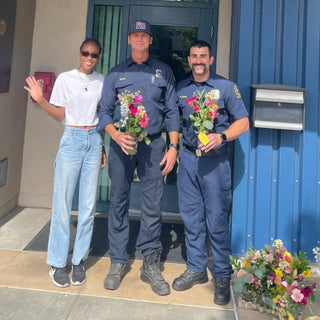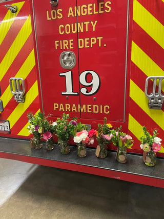 Flowers For First Responders was created as a way to say thank you with flowers and a personal handwritten note. The idea was simple but powerful: gather members of the Los Angeles community to create handcrafted floral arrangements and write personal notes of appreciation, then deliver these gifts directly to fire stations across LA County.