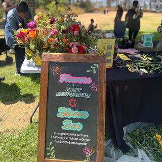 These events bring Angelenos together to honor first responders through flower arranging and heartfelt "Thank You" notes. Each session begins with a wellness exercise such as meditation, intention-setting, or a healing circle that invites reflection and emotional processing. Participants then channel their feelings into beautiful floral arrangements and notes of sincere appreciation. It’s a healing, hands-on experience that fosters both personal healing and community connection.